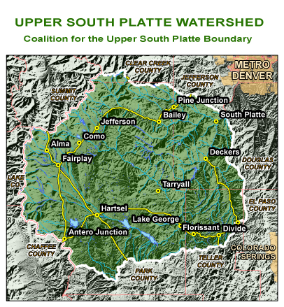 In 1998 a coalition of stakeholders, ranging from local governments and federal and state agencies, to businesses and interested individuals, banded together to protect the water quality and ecologic health of the Upper South Platte Watershed through the cooperative efforts of watershed stakeholders, with emphasis on community values and economic sustainability. They formed the Coalition for the Upper South Platte as a 501(c)(3) charitable nonprofit.