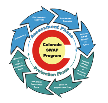 The Colorado Source Water Assessment and Protection (SWAP) program is designed to provide municipal water providers and public consumers with information about drinking water, as well as providing a way for water providers and community members and to get involved in protecting the quality of their drinking water. The program encourages community-based protection and preventive management strategies to ensure that all public drinking water resources are kept safe from future contamination.
